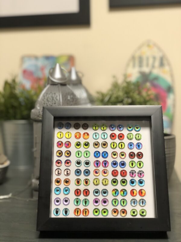 The 100 eyes are made of 50 pairs each pair unique in colour and design. Â Each eye is 10mm in size.